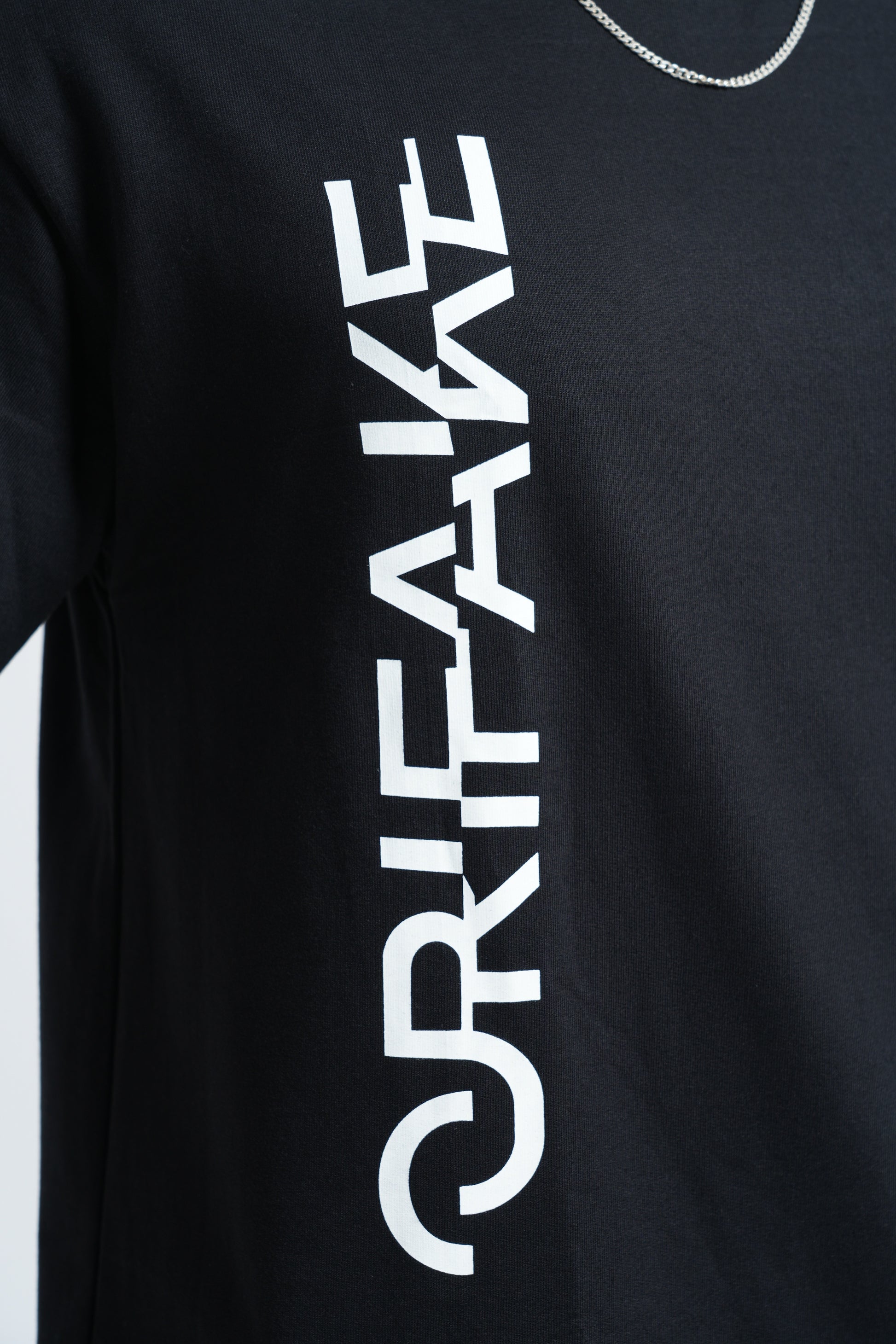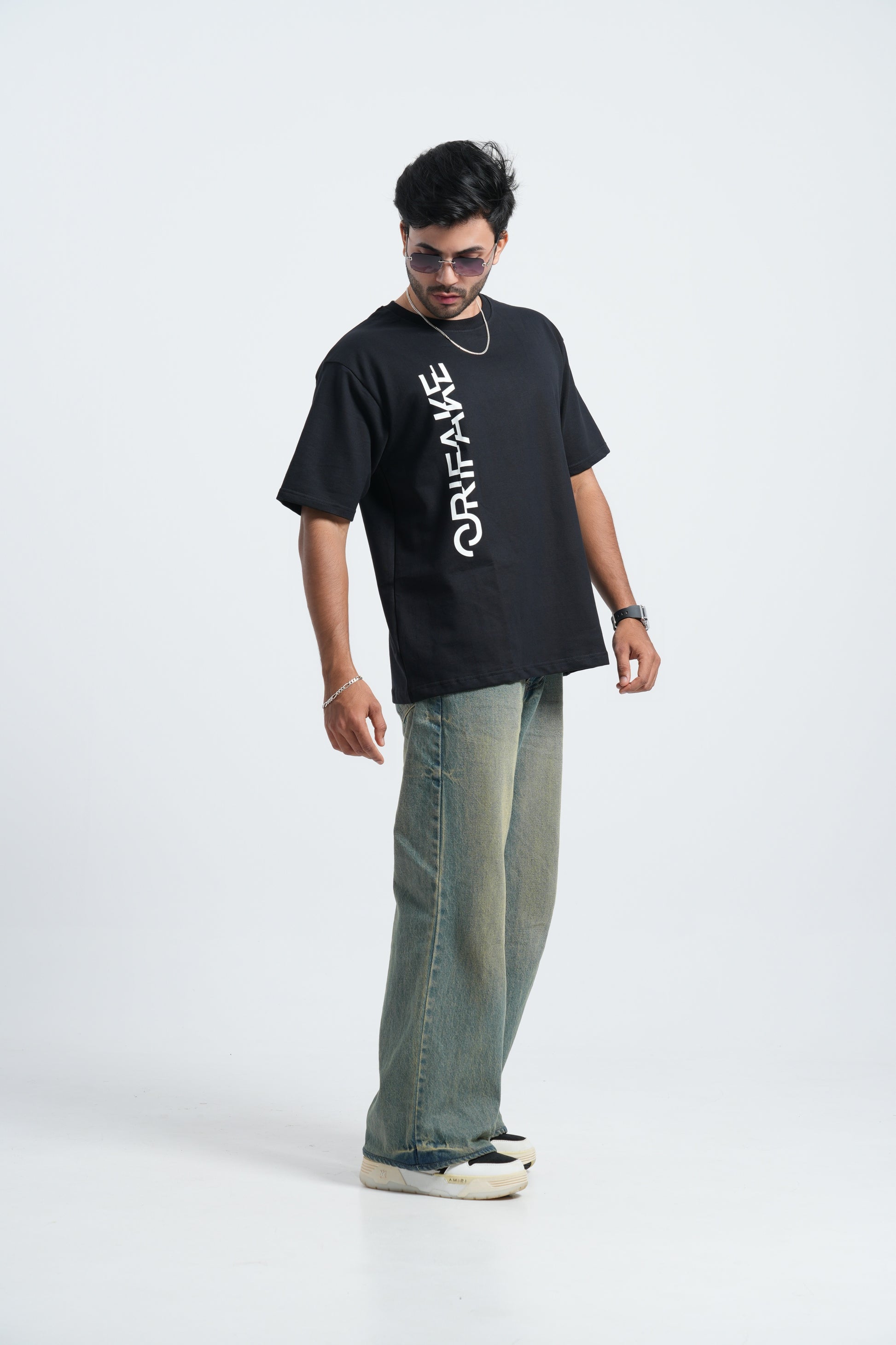 A vertical Orifake insignia runs down the right side in a bold, geometric font — a mark of individuality that complements its minimalist form. The five-sleeve silhouette adds contemporary balance, making it ideal for casual moments, creative spaces, or quiet weekends alike.