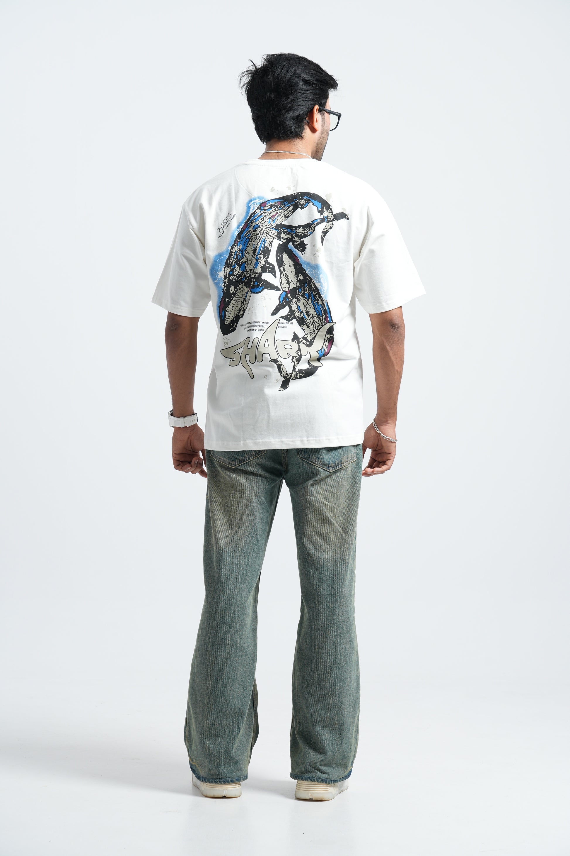 Crafted in premium cotton for relaxed comfort, the “Droplet Shark” tee reflects balance — fluid design meets fearless attitude.