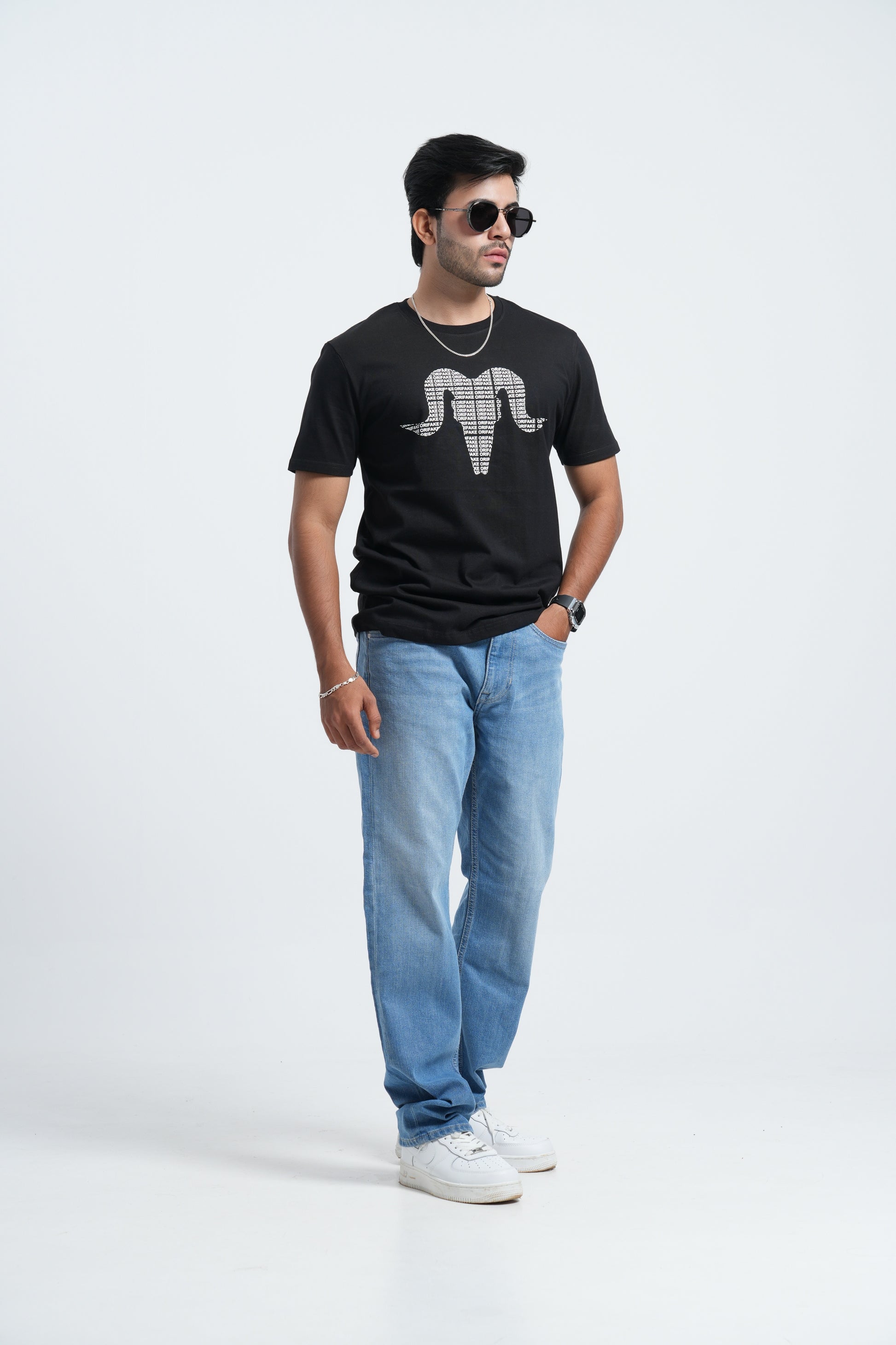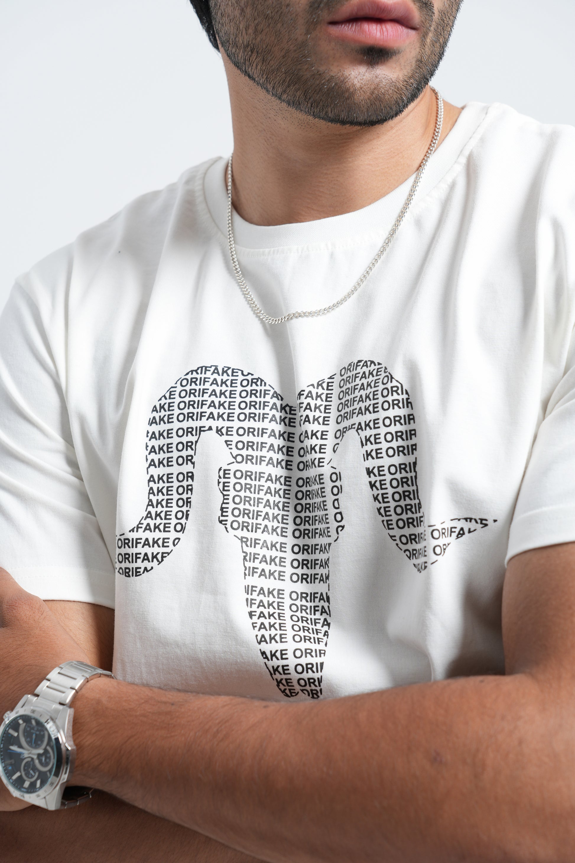 Keep it clean and classic with the Orifake Core Round Neck Tee. Made from soft, breathable cotton, it delivers easy comfort for everyday wear. The chest features our signature Orifake logo, filled with repeating “ORIFAKE” text — a subtle nod to brand identity without overstatement. Designed for those who appreciate minimal style with a refined edge.