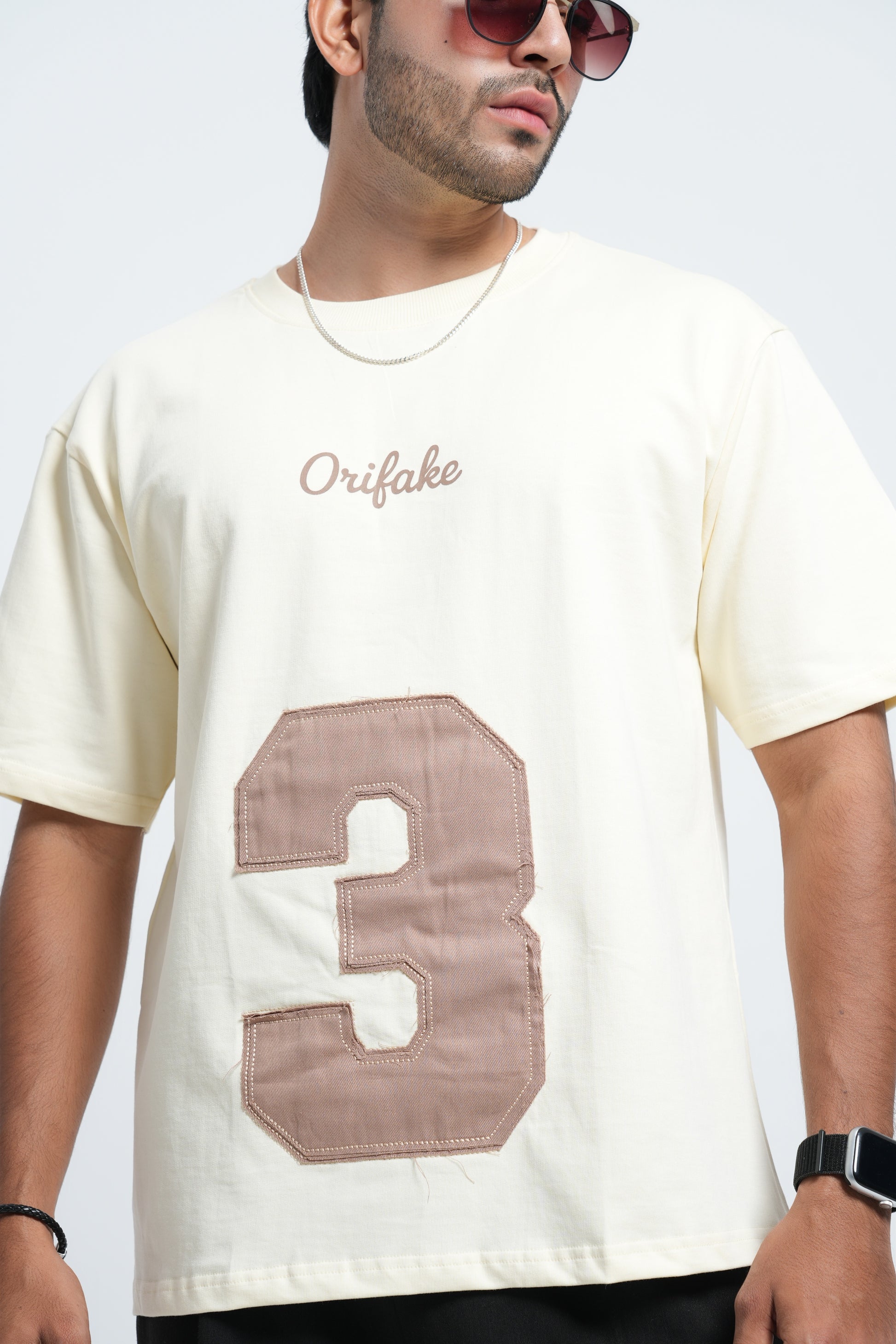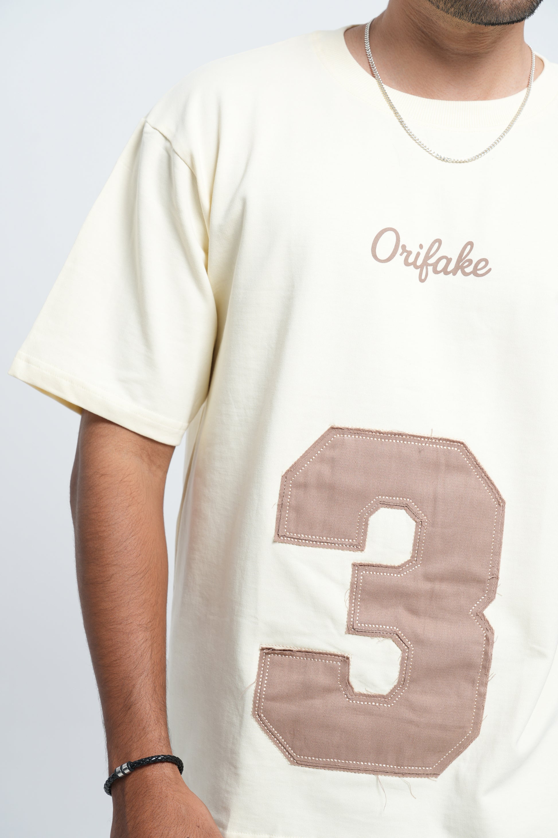 A blend of craftsmanship and quiet confidence — the OrifakeIndia 3 Tee embodies elevated minimalism with a bold personality. Designed in a soft cream tone, the standout feature is the layered stitched “3” applique — crafted from dual fabric panels meticulously placed one over the other. With time and wear, this layered design naturally softens and develops a unique character, making every piece truly one of a kind.