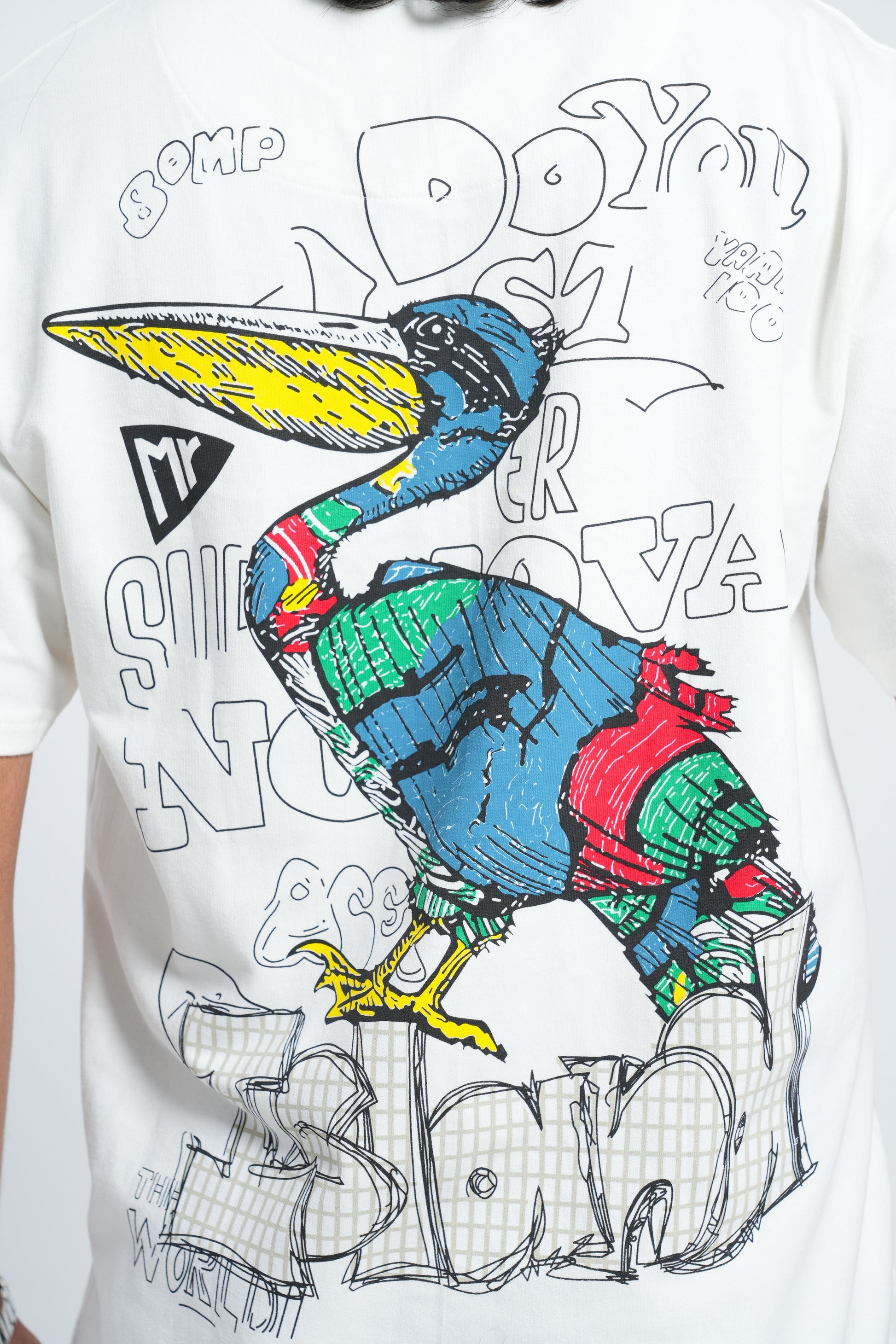 The Orifake Pelican Island Tee brings street-art energy with a colourful pelican graphic that screams creative chaos.