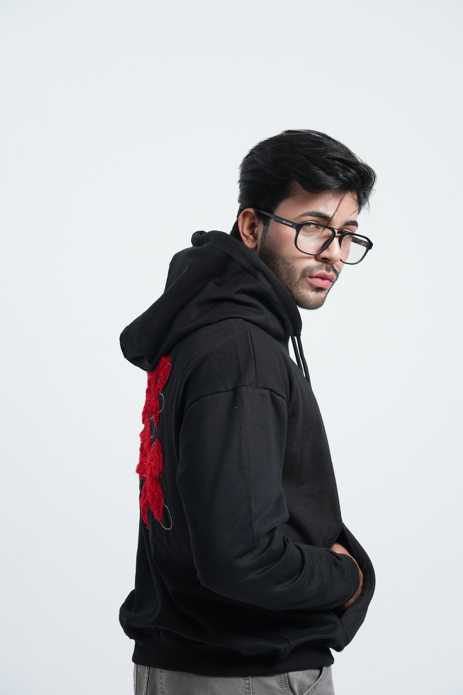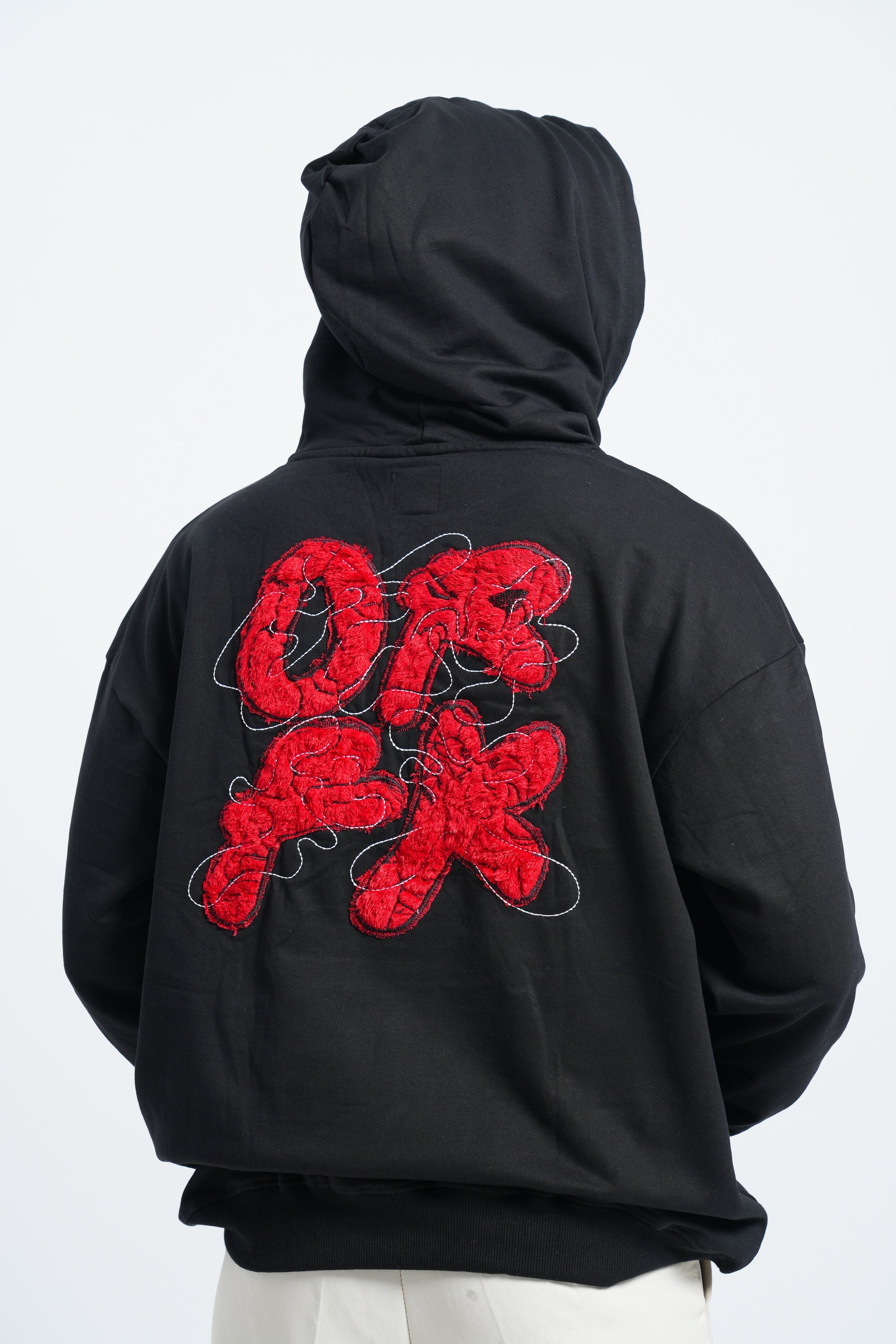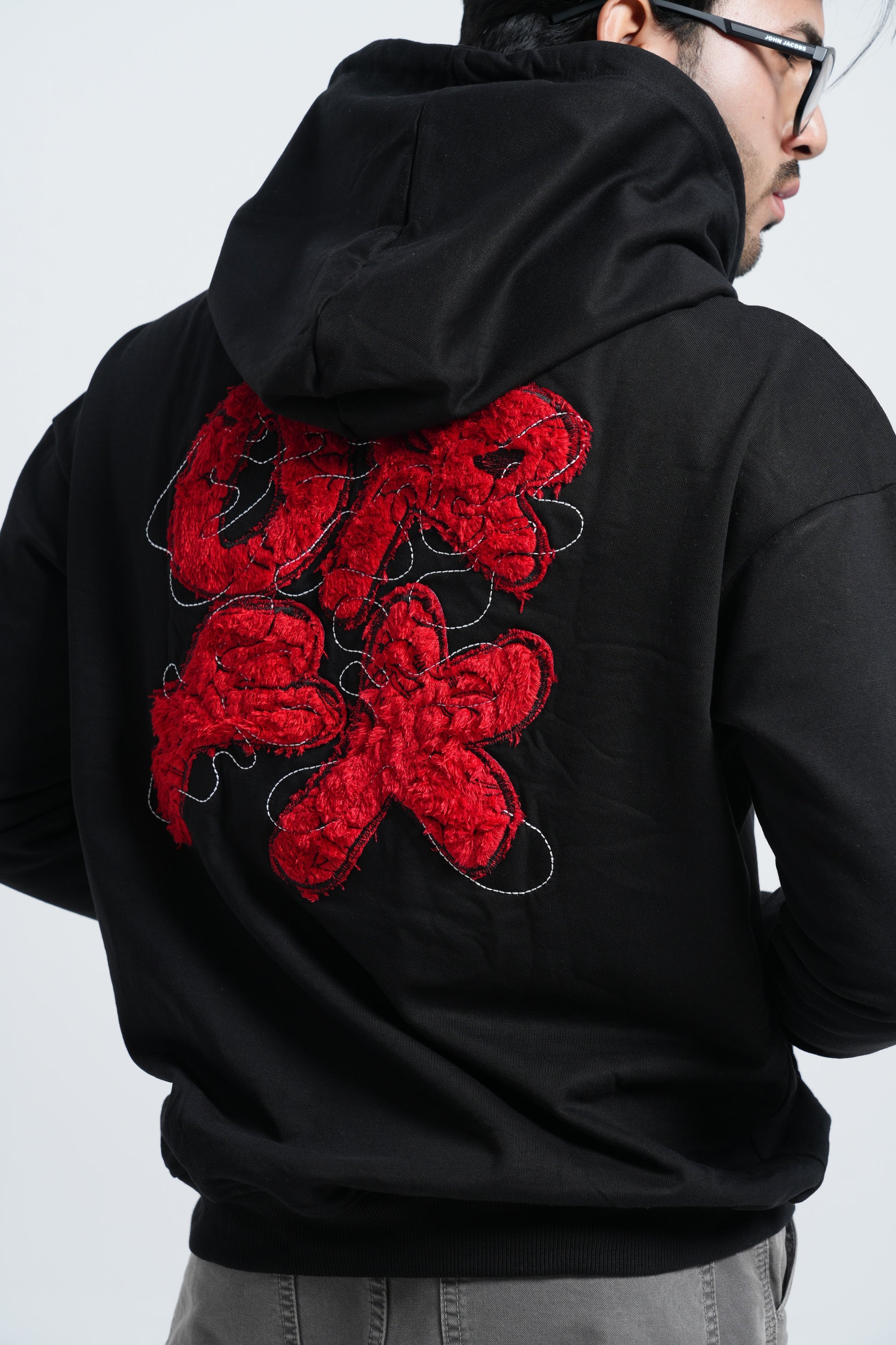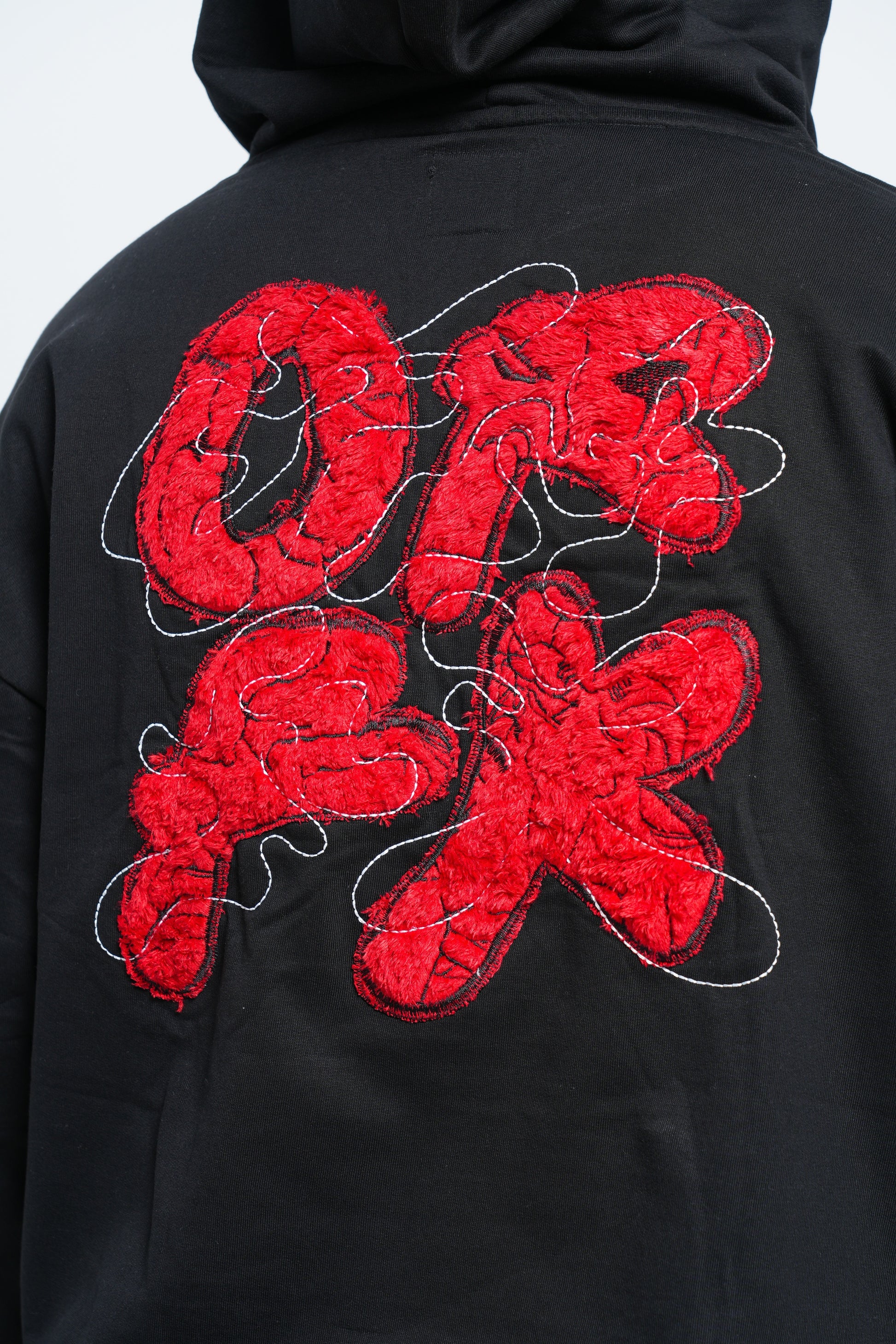What truly sets it apart is the signature back embroidery — a hand-programmed artwork made of over 150,000 precision stitches, taking nearly 6 hours to craft on each hoodie. The bold red threadwork isn’t just design — it’s an expression of depth, patience, and individuality.